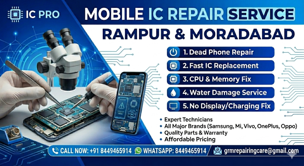 At GRM Repairing Care, we provide expert Mobile IC Repair Services in Rampur & Moradabad with fast and reliable solutions π±π§